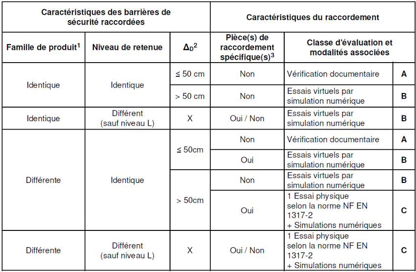 La Administración Francesa ha sido una de las primeras en adoptar una normativa propia para la evaluación de transiciones, conocida como NF058(IX). Esta normativa clasifica las transiciones según las características de los elementos que se desean conectar, proporcionando un marco detallado que determina los ensayos necesarios para obtener la certificación, tal y como se ilustra en la imagen 3 de este artículo.